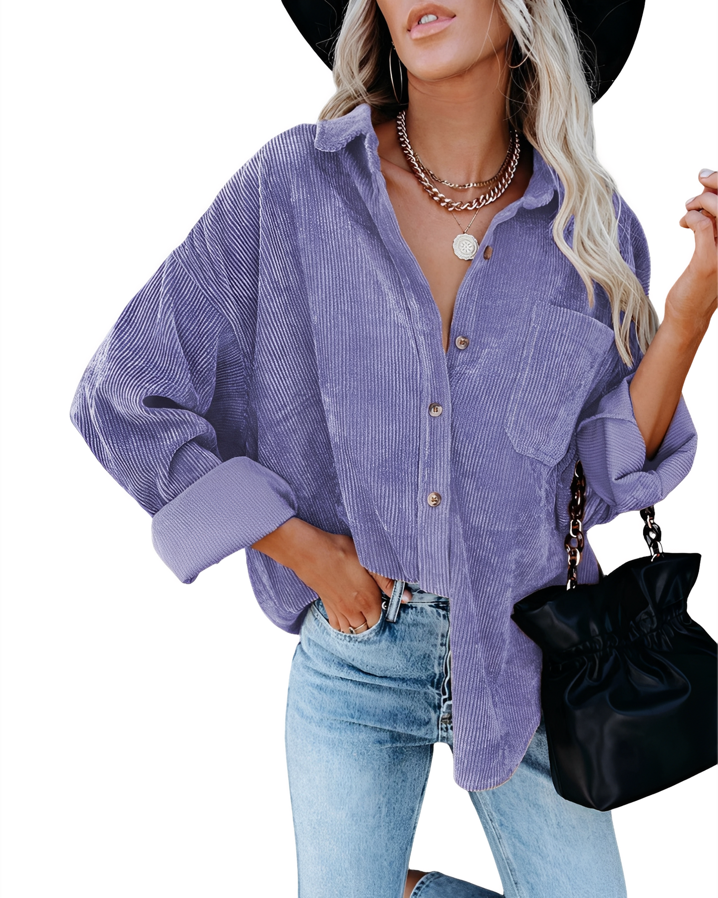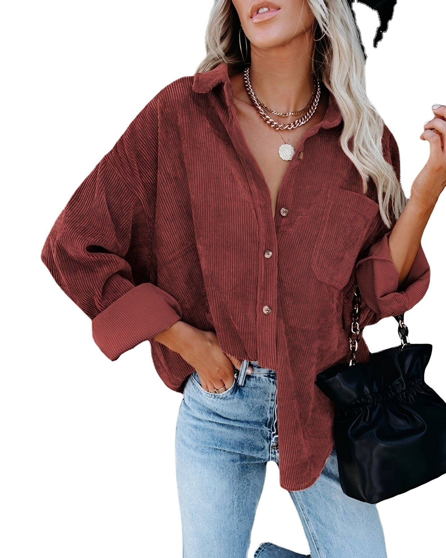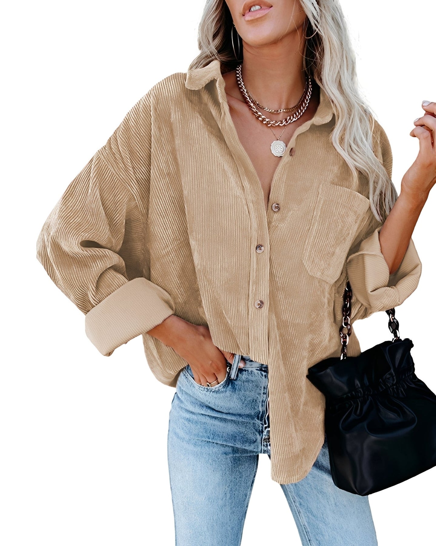 Jemima - Polo casual de pana de corte holgado para mujer
