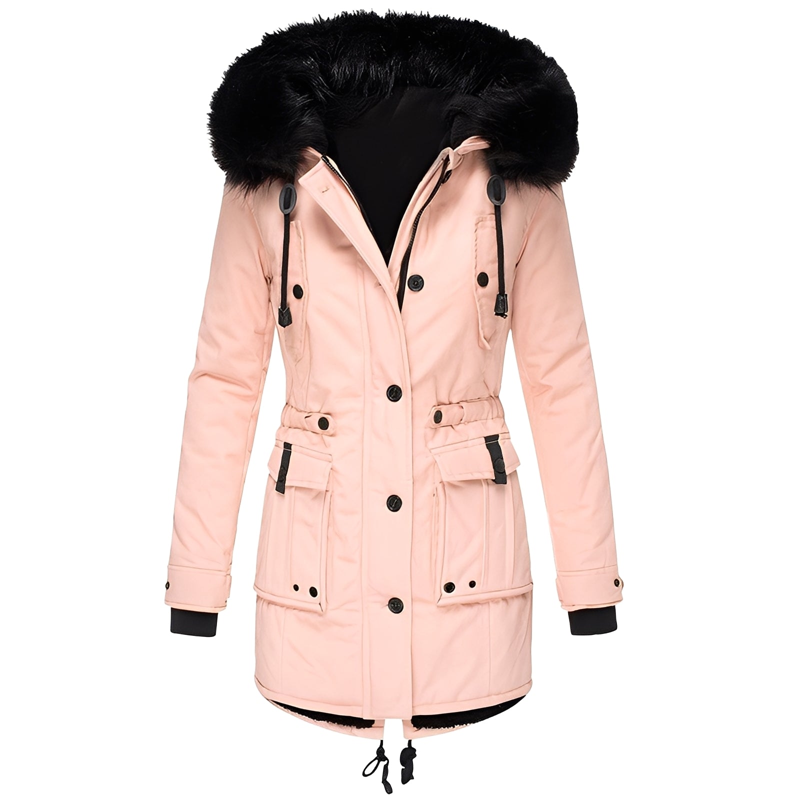 Elsie - Abrigo grueso con capucha y forro de felpa para mujer