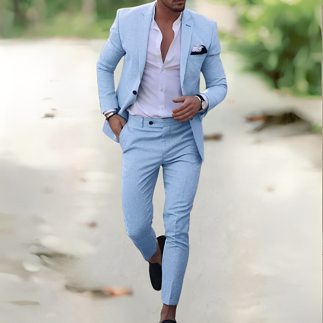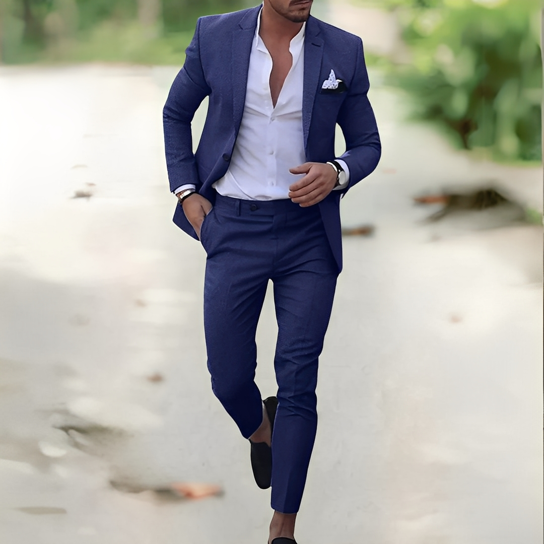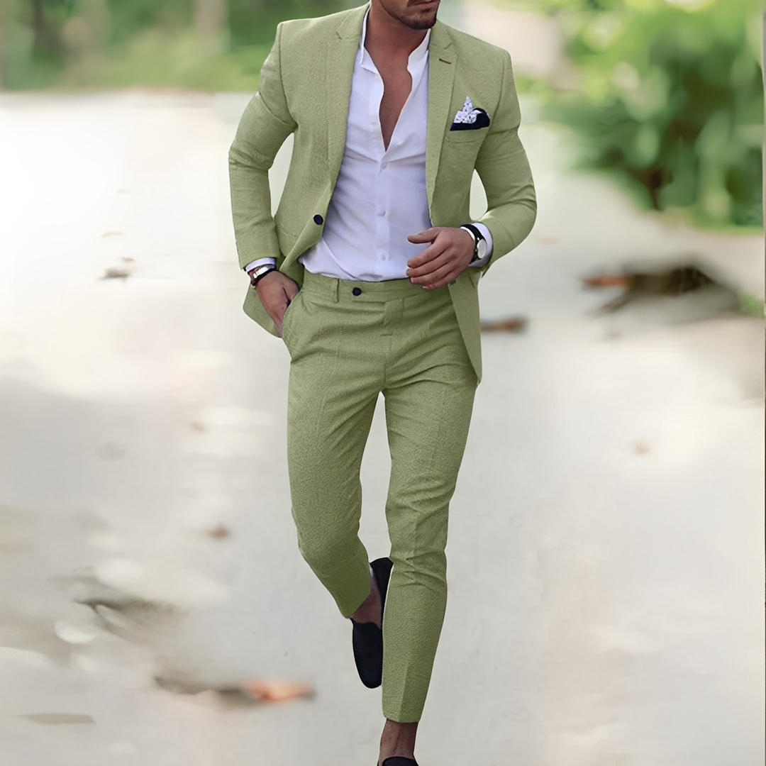 Este traje de lino de lujo para hombre Jovany combina elegancia refinada y confort durante todo el día. Es perfecto para eventos formales, reuniones de negocios o ocasiones especiales. Confeccionado en un lino de alta calidad, ofrece una buena transpirabilidad mientras mantiene un aspecto impecable y cuidado. Su corte ajustado resalta tu silueta, dándote confianza y estilo. Ligero pero resistente, está diseñado para combinar confort y sofisticación. Mejora tu guardarropa con un traje que combina lujo, estilo y practicidad.