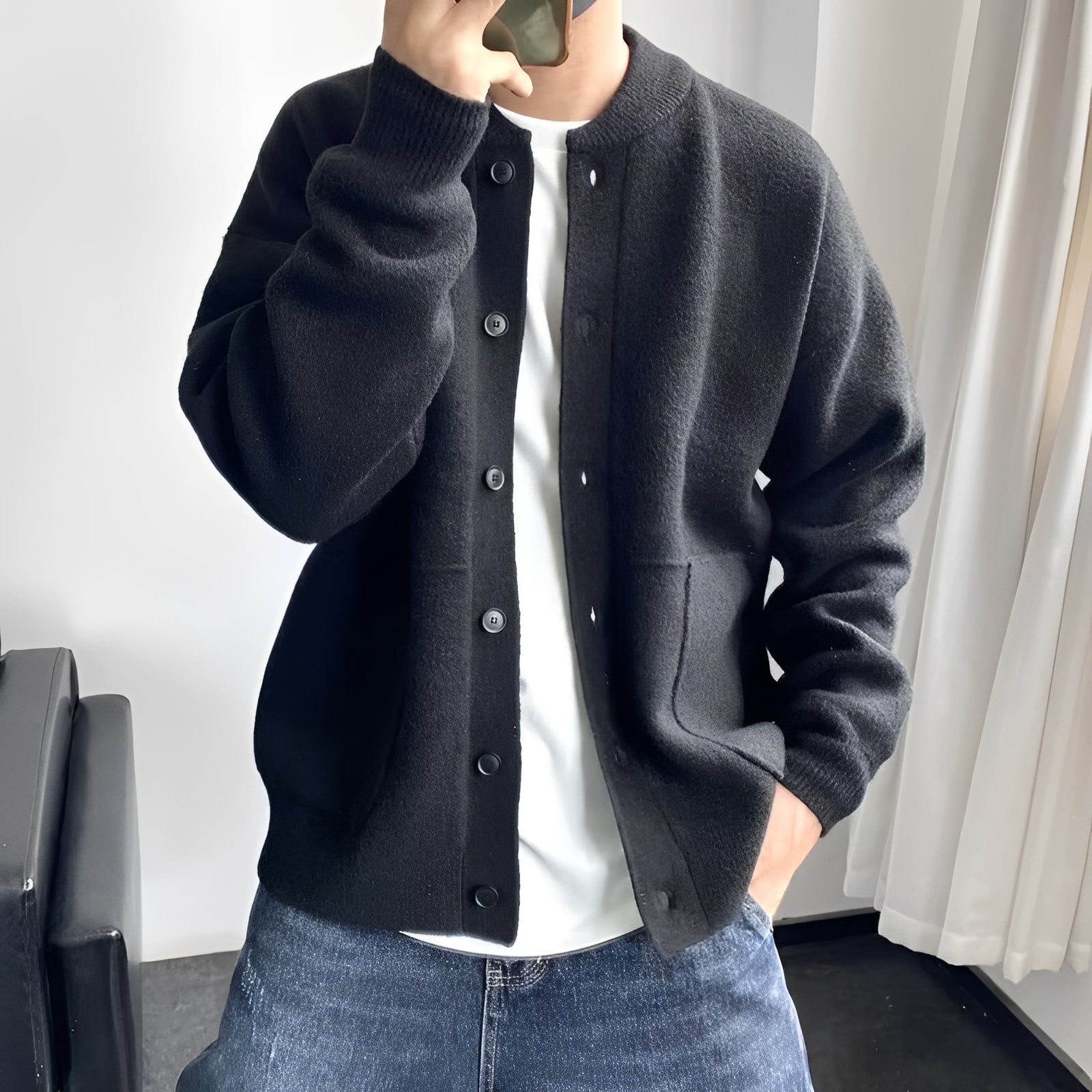 Una chaqueta de lana moderna que combina perfectamente estilo casual y comodidad.