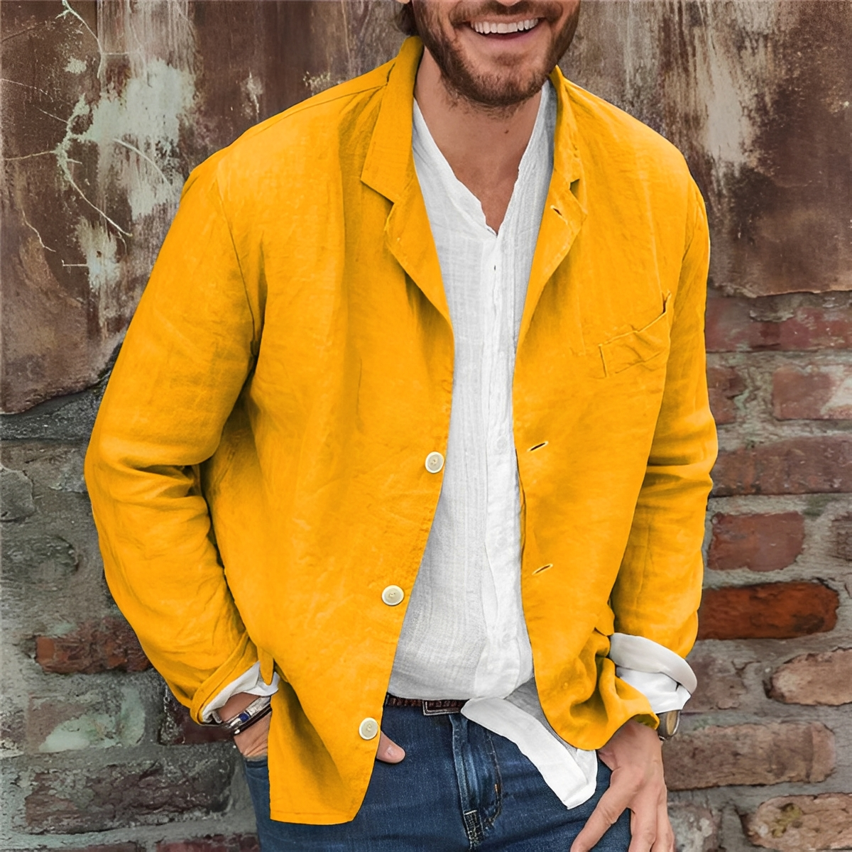 Moderniza tu guardarropa con esta chaqueta ligera e informal para hombre de Keneth, diseñada para combinar comodidad y sofisticación. Fabricada en una mezcla de algodón y lino transpirable, te mantiene fresco y cómodo en climas cálidos mientras te ofrece un look cuidado. Su corte amplio te permite moverte libremente, lo que la hace perfecta para el trabajo, los viajes o las salidas de fin de semana. Su diseño clásico se combina fácilmente con camisas, camisetas o pantalones para un estilo versátil. Disfruta de una chaqueta que combina estilo natural y funcionalidad.