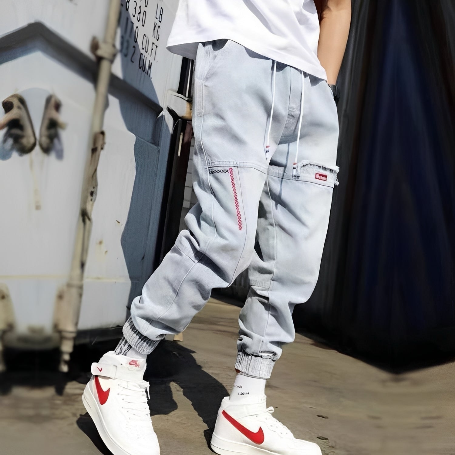 Victor - Jeans baggy elegantes con puños elásticos para hombres