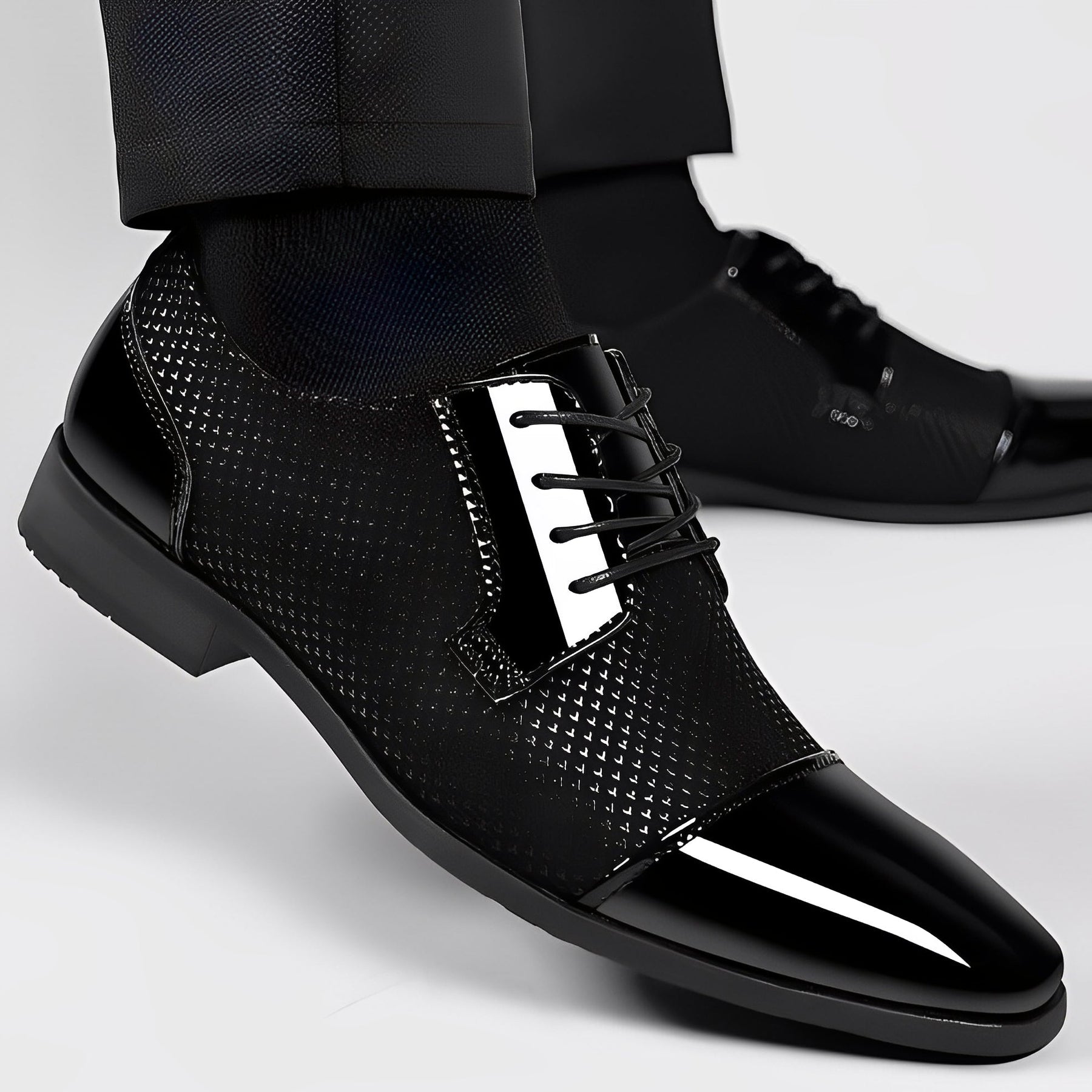 Los zapatos de cuero Wystan para hombres combinan elegancia atemporal con un diseño de cuero de alta calidad y ofrecen comodidad óptima en cualquier ocasión. La plantilla interior suave y acolchada proporciona una sensación agradable al caminar, incluso en días largos. El diseño clásico se adapta idealmente a trajes, atuendos de negocios o de fiesta. La robusta fabricación garantiza durabilidad y una apariencia elegante. Con Wystan, elige zapatos de hombre cómodos y elegantes para momentos especiales.