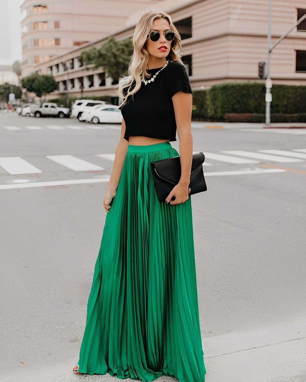 La maxifalda Sophie impresiona con su diseño plisado moderno y un corte fluido que subraya elegantemente cada movimiento. El material ligero asegura una cómoda experiencia de uso y una silueta favorecedora. Versátil y combinable, se adapta perfectamente a blusas, tops o suéteres de punto. Ideal para el día a día, la oficina o eventos festivos.