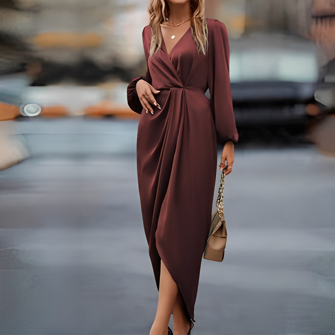 • Corte favorecedor: el corte midi de manga larga resalta magníficamente tu silueta.