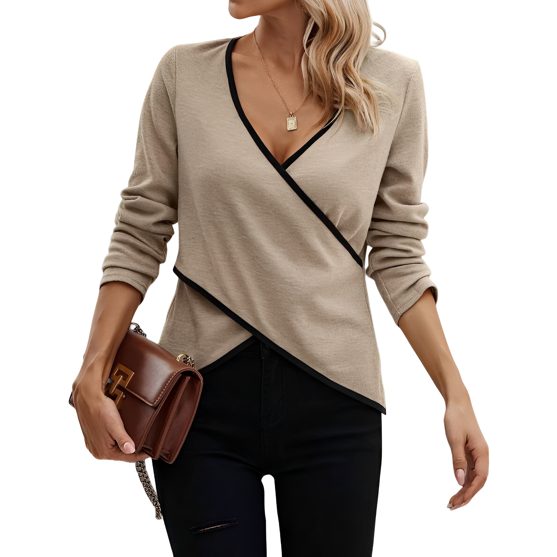 Rachel - Elegante camiseta de manga larga con cuello en V para mujeres