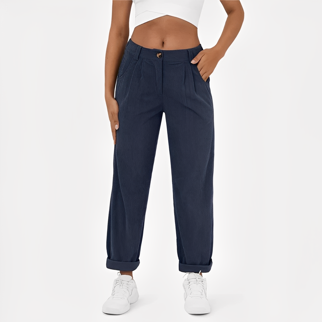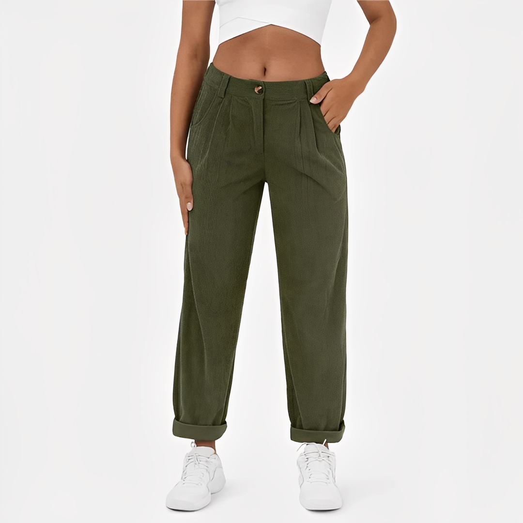 Mejora tu guardarropa con este pantalón de pana moderno para mujer Janice, diseñado para combinar comodidad y moda. La tela suave y acanalada ofrece una sensación de confort mientras proporciona un look favorecedor y moderno. Perfecto para salidas informales, el trabajo o los fines de semana, este pantalón combina estilo y versatilidad. La cintura elástica asegura un ajuste perfecto para comodidad durante todo el día. Combínalo sin esfuerzo con blusas, suéteres o chaquetas para un look chic en cada ocasión.