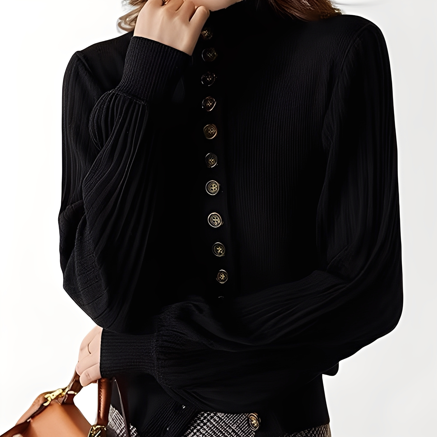 Por eso, 'Adelyn - Top de punto con cuello alto, botones y mangas de farol' debe estar en tu armario: