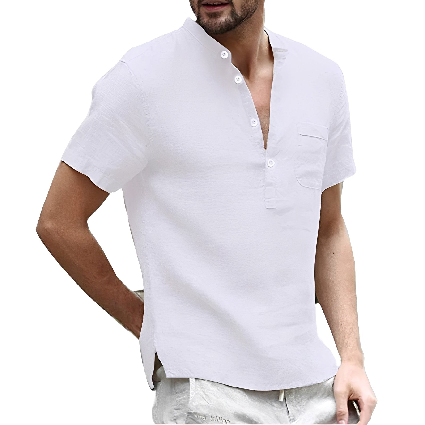 La camisa de lino Alton combina comodidad y diseño elegante. Fabricada con lino de alta calidad y ligero, proporciona una sensación agradable incluso en los días calurosos de verano. La manga corta y el corte suelto ofrecen máxima libertad de movimiento, mientras que el diseño atemporal es versátil y combinable, perfecto para el ocio, las vacaciones o looks de negocios informales. Un imprescindible para los hombres con estilo en la temporada cálida.Por eso, la "Alton – Lightweight men