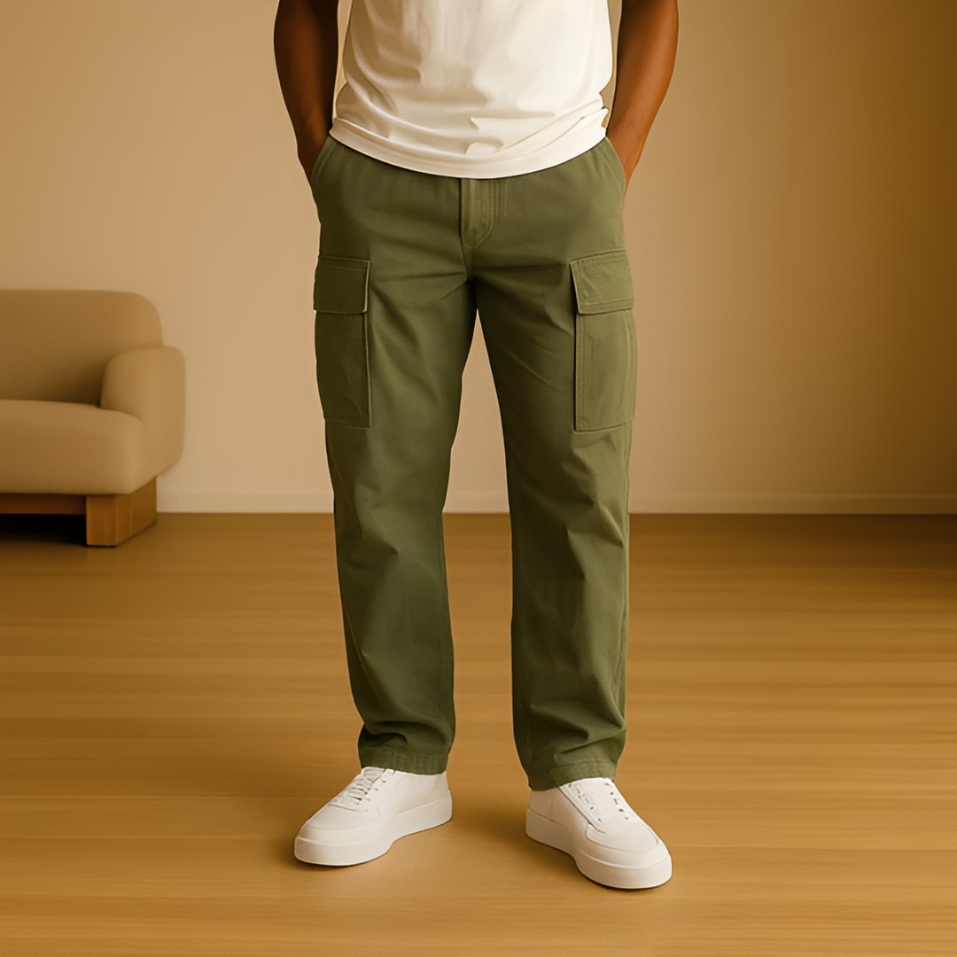 Un pantalón cargo para hombre indispensable por su comodidad, estilo y versatilidad diaria.