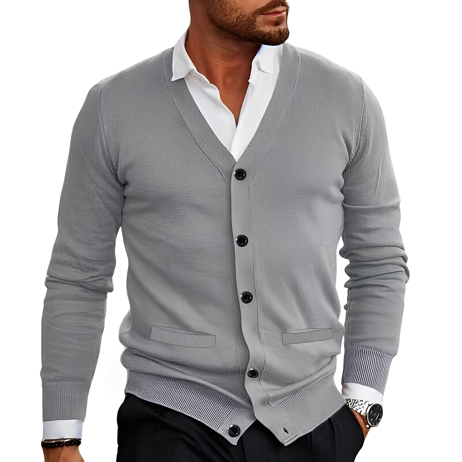 Kyler - Elegante chaqueta de punto con botonadura para hombres
