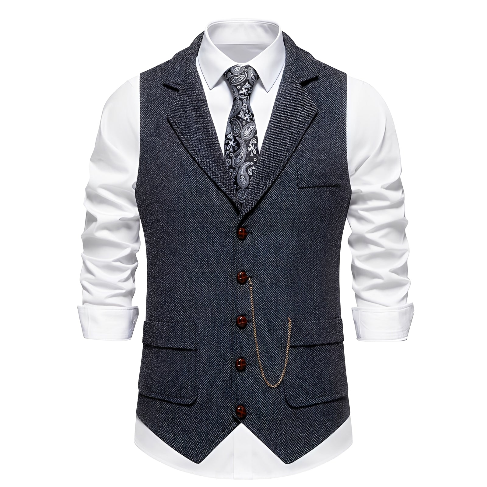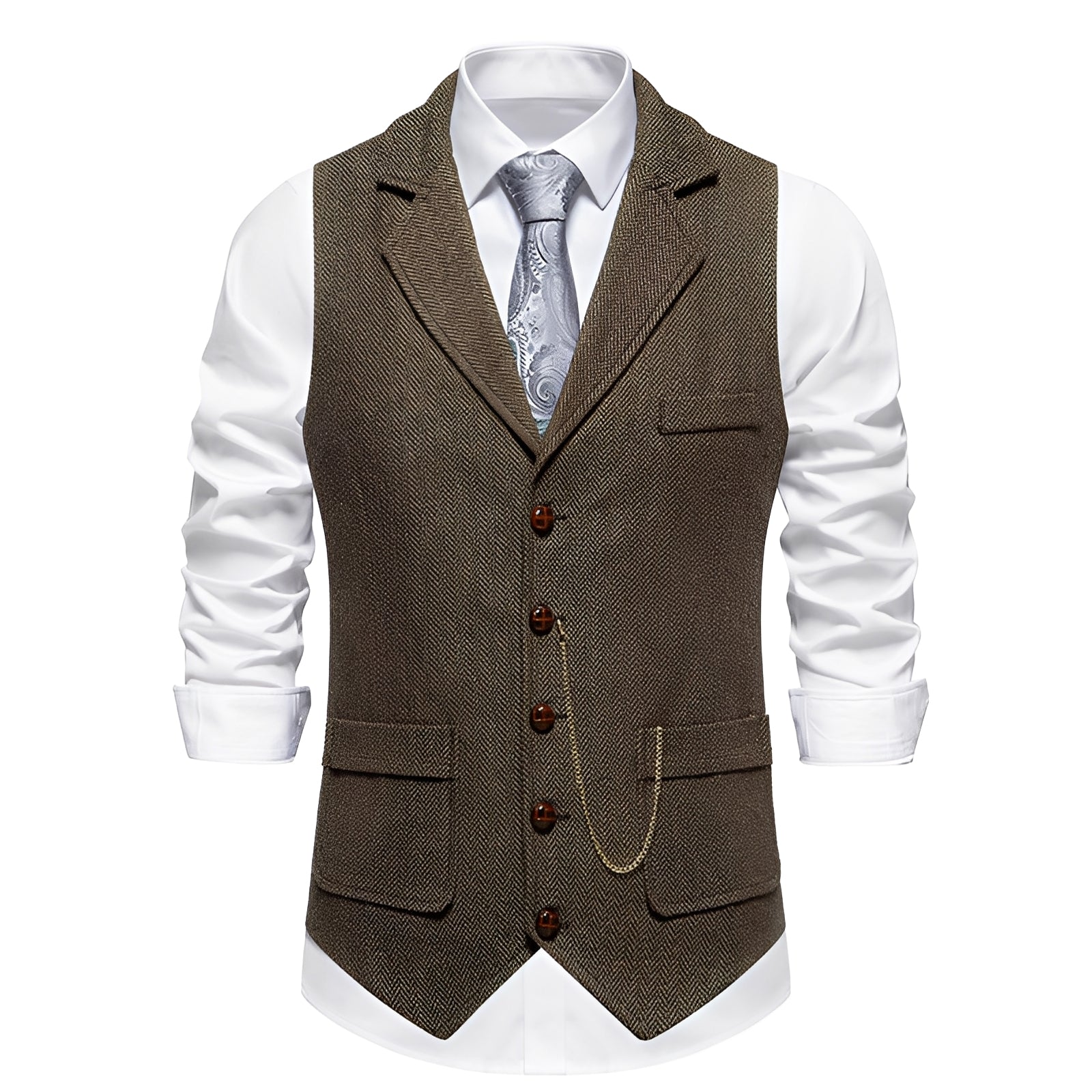 Luther - Clásica Chaleco con Patrón de Espina de Pescado para Hombres